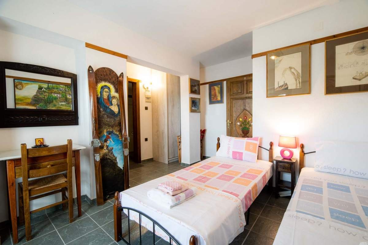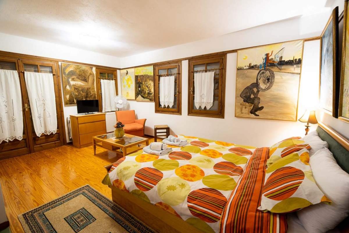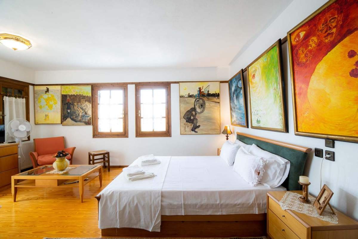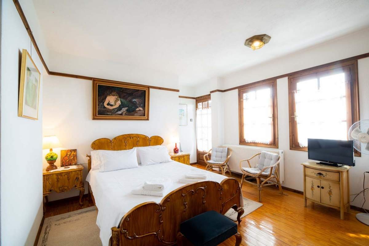 This villa has six private double rooms and one double-triple room with their own bathrooms and can host up to 15 people. All apartments are located on the first and second floor. Each room is decorated differently and has its own unique style. The house is a genuine traditional building, made with passion and care and is decorated with fine furniture, paintings and antiques. If you are a couple, a family or even a group of people, you can rent one or more units in this mansion house!